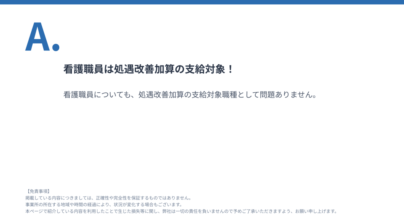処遇改善加算については事業所の所在地域や時期によって制度の運用や解釈が異なる場合もあります。