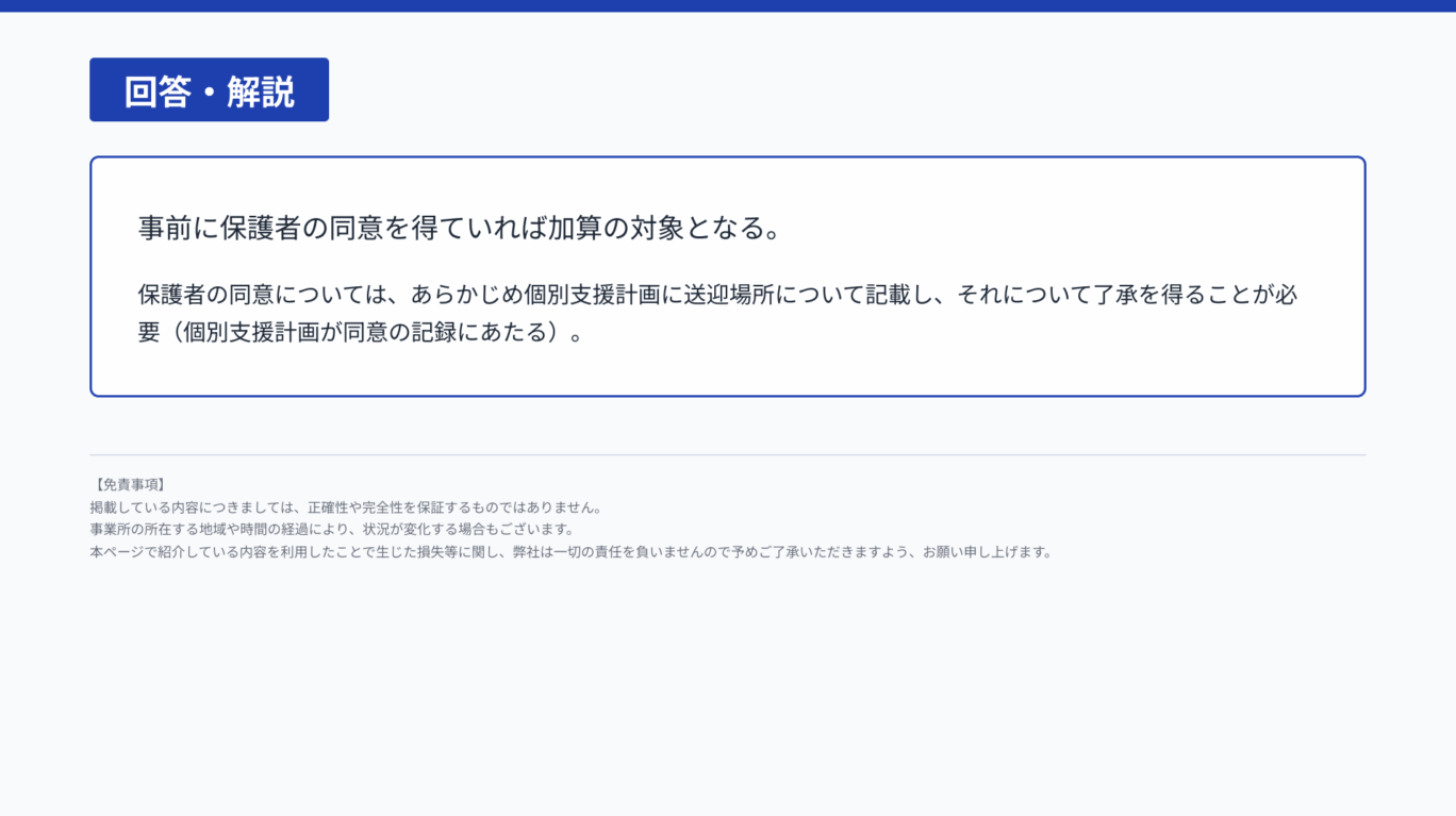 しかし、日々の運営の中で「自宅以外の場所を送迎場所として指定した場合、送迎加算の対象になるのか?」というご質問をいただくことがあります。